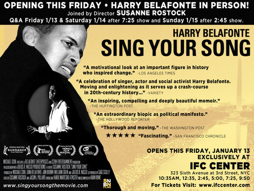 Sing Your Song opens this Fri. 13th in NYC + LA. Celebrate the life + history of @HarryBelafonte + others. Info:http://bit.ly/nHFAXl